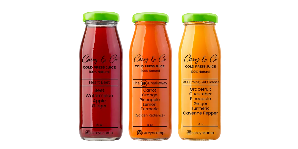 Step into the world of Carey & Co., where every bottle is packed with purpose. Our cold-pressed juices are handcrafted using real fruits, veggies, and herbs to nourish your body and elevate your lifestyle.